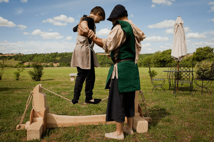 Vous y découvrirez la danse, la calligraphie, le maillage, le tissage de galon, la fabrication de corde, la fonte et la création de petits objets en étain. Vous pourrez vous initier aux combats à l’épée, comprendre le fonctionnement d’un trébuchet.